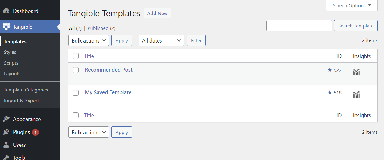 In the same way that a WooCommerce shop uses the ‘product’ post type and a WordPress blog uses the ‘post’ post type, Loops & Logic uses a custom post type called template. L&L markup is always written within a template, whether that’s in the WP admin under Tangible > Templates or directly in a page builder using the Tangible Template block.